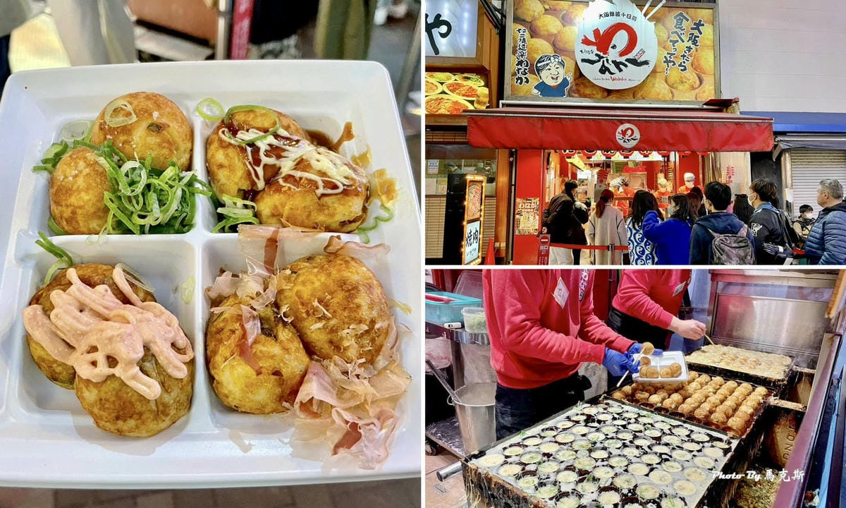 大阪章魚燒推薦的Creo-Ru章魚燒道頓堀店,就在最熱鬧的道頓堀商店街上。 這裡有多間章魚燒店,各有各支持者,剛好看到這間大排長龍就跟著排。 現場排隊時有多國語言菜單可看,點了人氣NO.1的溏…