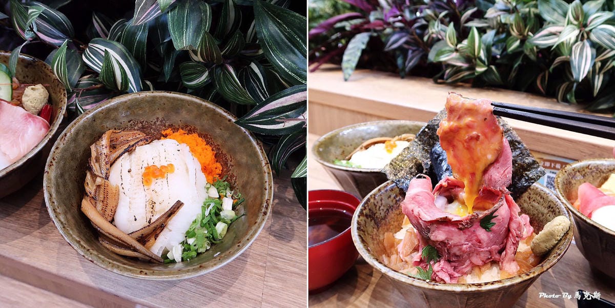 台中梧棲三井OUTLET美食|冰見海鮮丼粋鮨,來自日本富山市丼飯專賣店。 溫泉蛋玫瑰牛肉丼飯好迷人,台灣第一家,三井美食街人氣店家|台中港|台中海線|港區公園| 來自日本北陸富山冰見市的「冰…