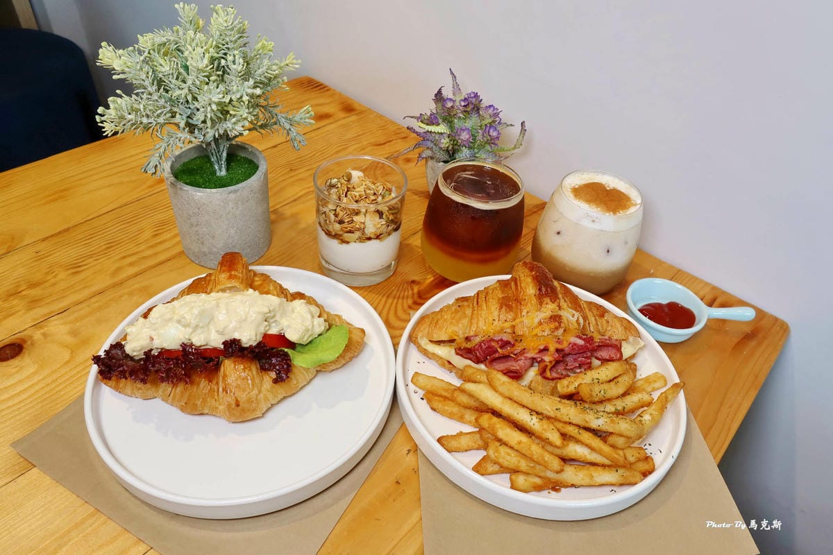 中興大學早午餐/台中南區早午餐推薦的恰吉可頌。 是間鹹可頌專賣店,Google評論高達4.7顆星,擁有全台最多口味鹹可頌選擇。 三色熔岩起士牛肉可頌外香酥脆,趁熱吃會牽絲爆料很可口。 蘋果蛋沙…