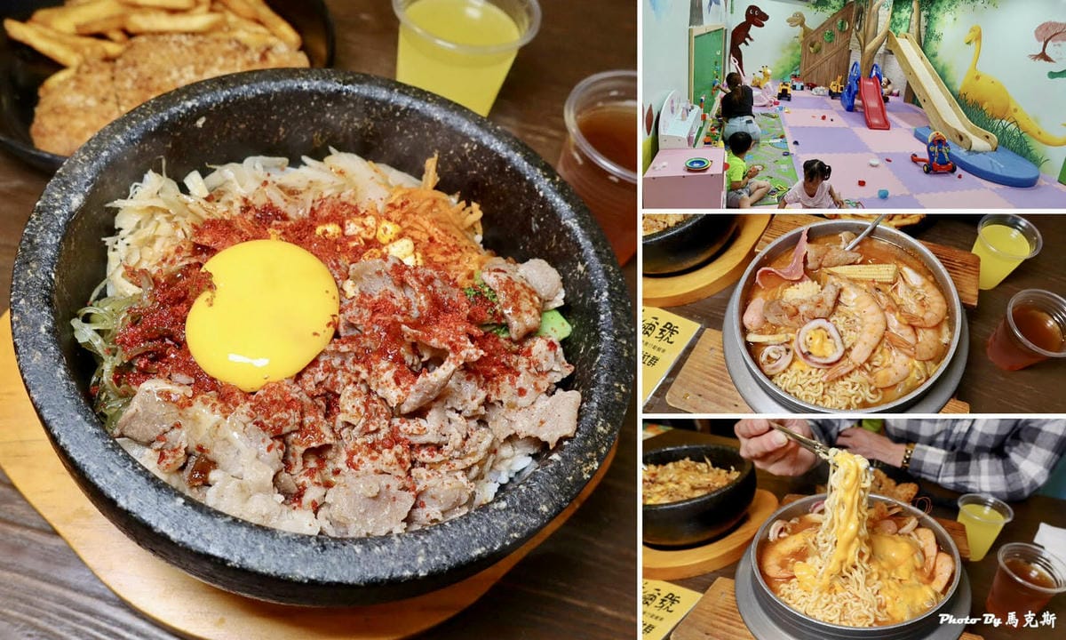 員林親子餐廳/員林韓式料理/員林聚餐餐廳推薦的瑪西所親子館。 最近跟好友來到這裡相聚,賣有韓式料理和義式餐點,餐點現點現做請耐心等候。 石鍋牛豬雙拼拌飯配料滿滿豐盛,海鮮+豬肉起司部隊…