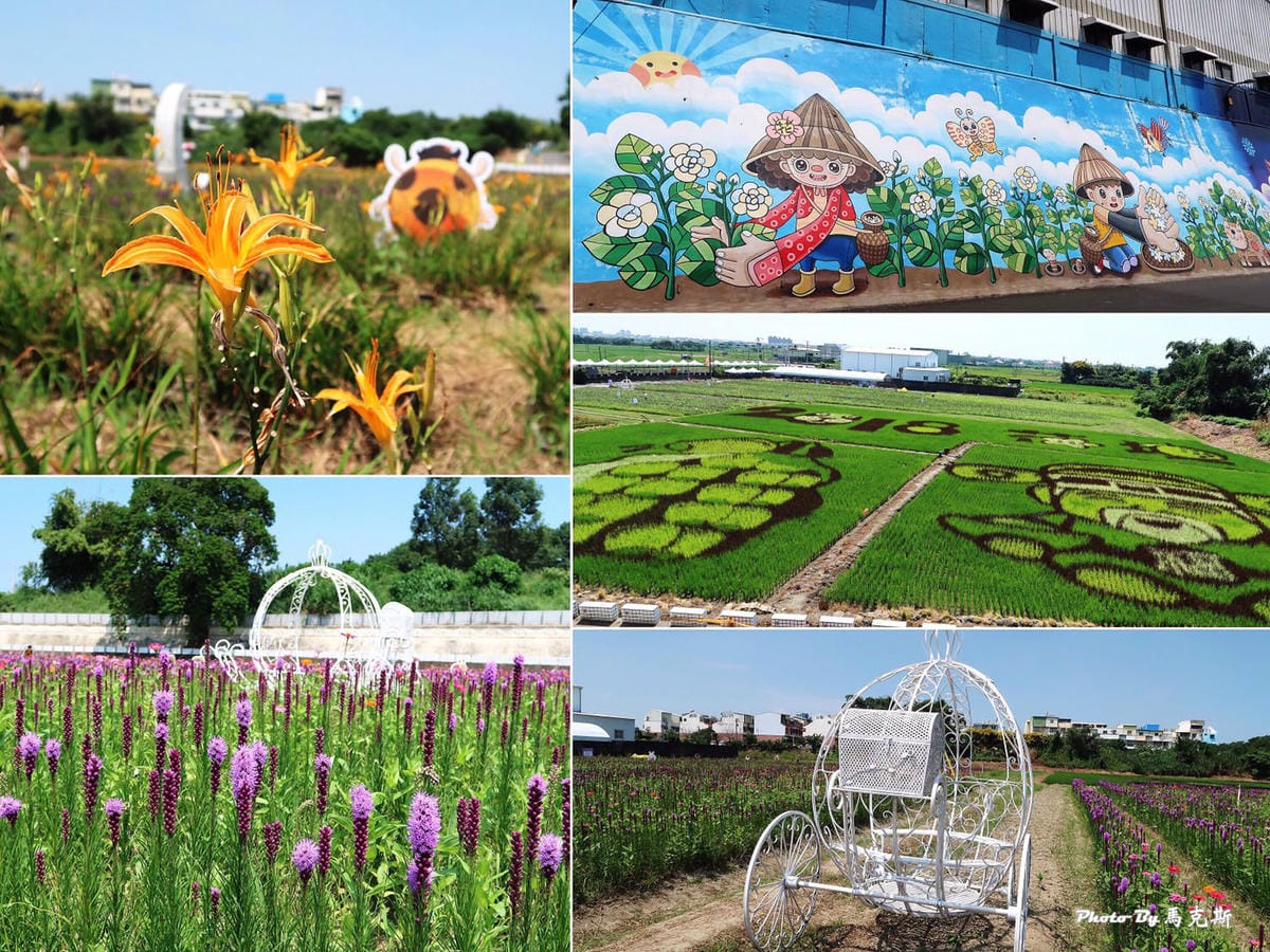 【2018花壇花海】三春老樹花海,麒麟菊花海綻放美不勝收,稻田彩繪好吸睛。 還有3D彩繪牆可拍照,免費旅遊景點|花壇景點|雙心池塘|進昌咖啡烘焙館| 一年一度的三春老樹花海.稻田彩繪又開始囉…