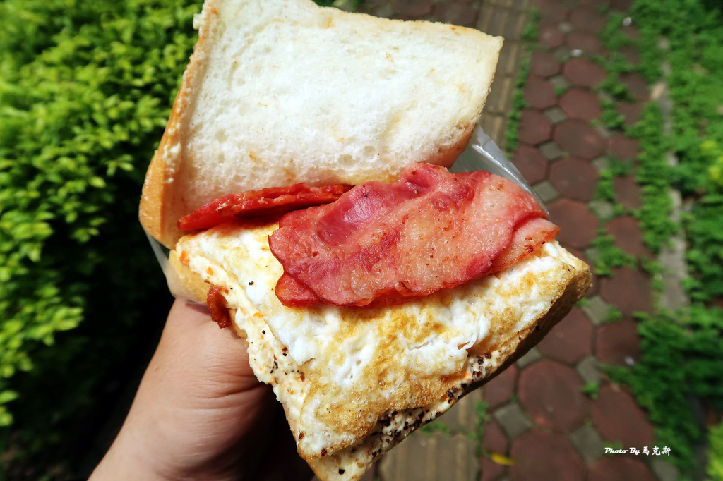 晨光土司塗抹上馬鈴薯沙拉,足足給到2片培根及全熟蛋。
