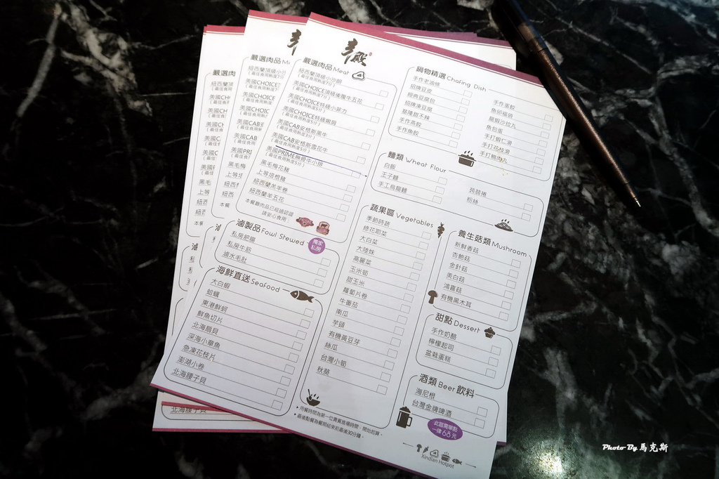 限時用餐2小時吃到飽,採單點式畫單,畫好給服務人員。