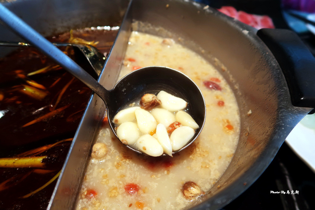 白鍋用蔬果及豬大骨熬煮,隨便一撈滿滿的蒜頭。