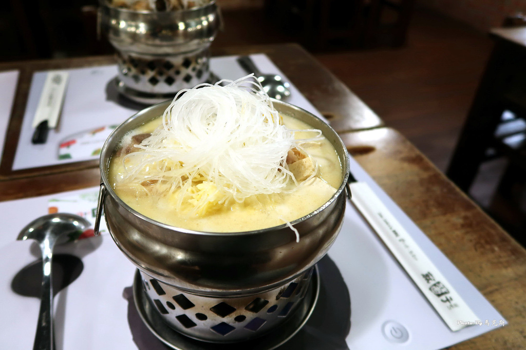 下面是酒精燈爐架,待湯頭滾後湯汁一直快溢出來。