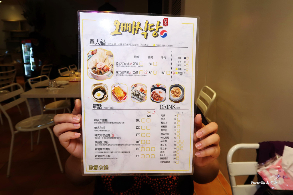 有歐霸韓式海鮮鍋、單人鍋附白飯,白飯可換購其他食物。
