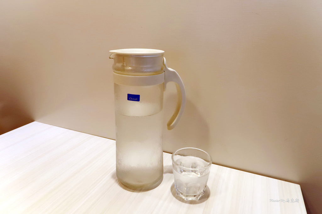 會遞上一壺冰開水、茶杯、盤子及餐具。