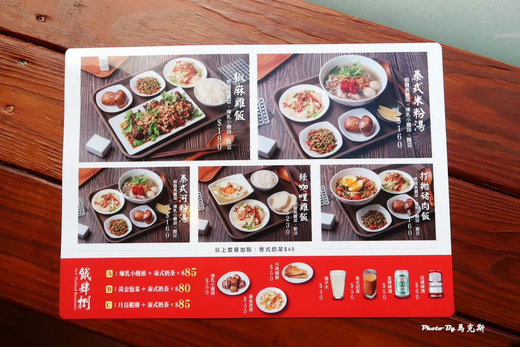 還有A、B、C餐可加點,凡點套餐點泰式奶茶40元。