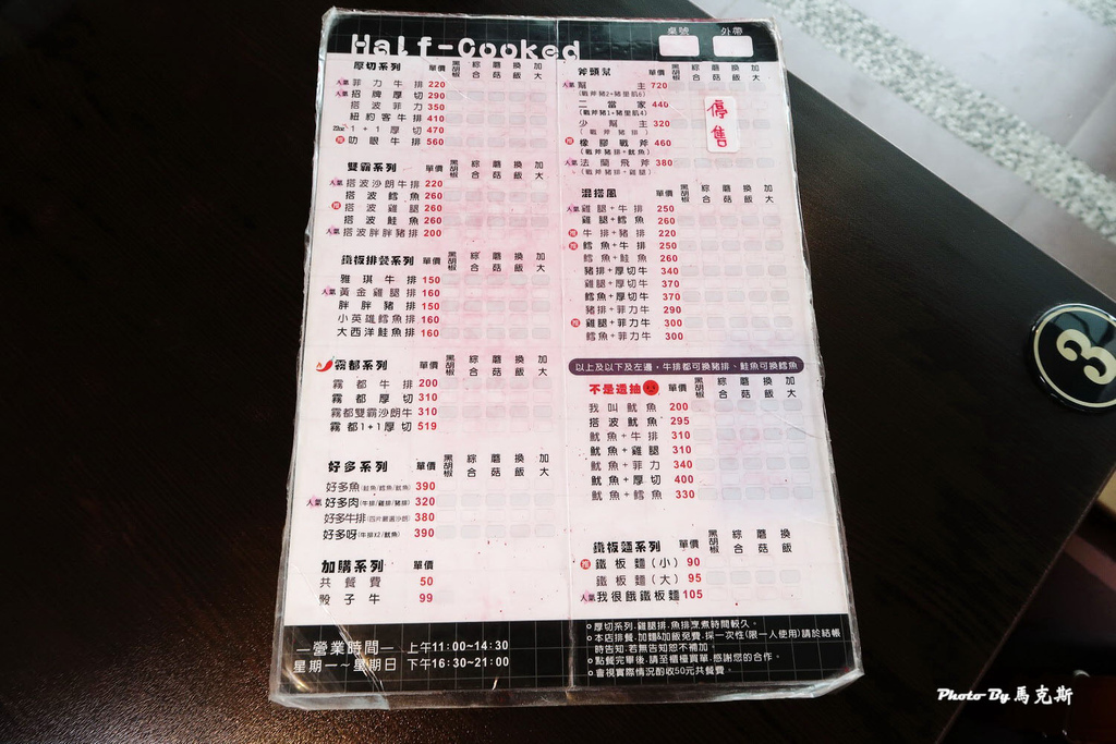 來看看午食5分鐵板牛排麻豆店的菜單價目表。