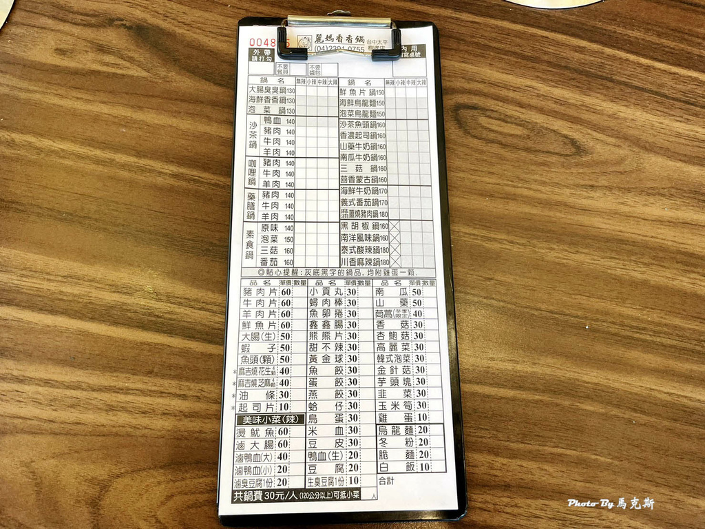 來看看麗媽香香鍋太平樹孝店的菜單價目表。