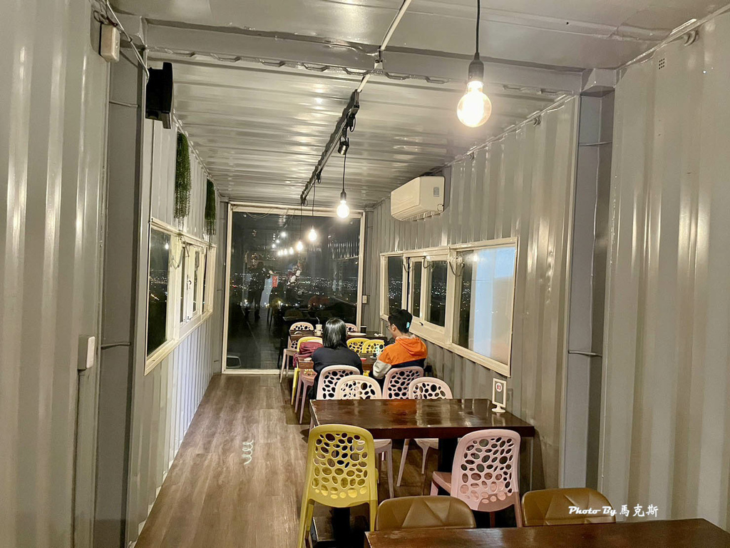 二樓有露天或透明玻璃貨櫃屋內的座位。