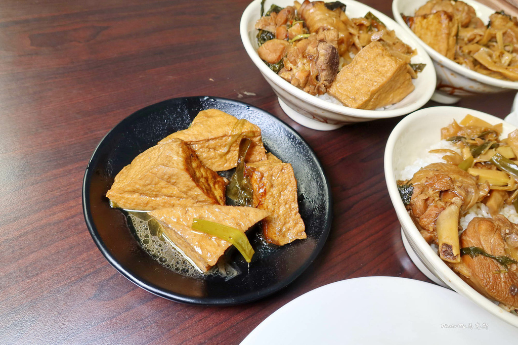 三杯雞飯附有筍乾和油豆腐,筍乾略脆嫩,油豆腐軟嫩都很入味。