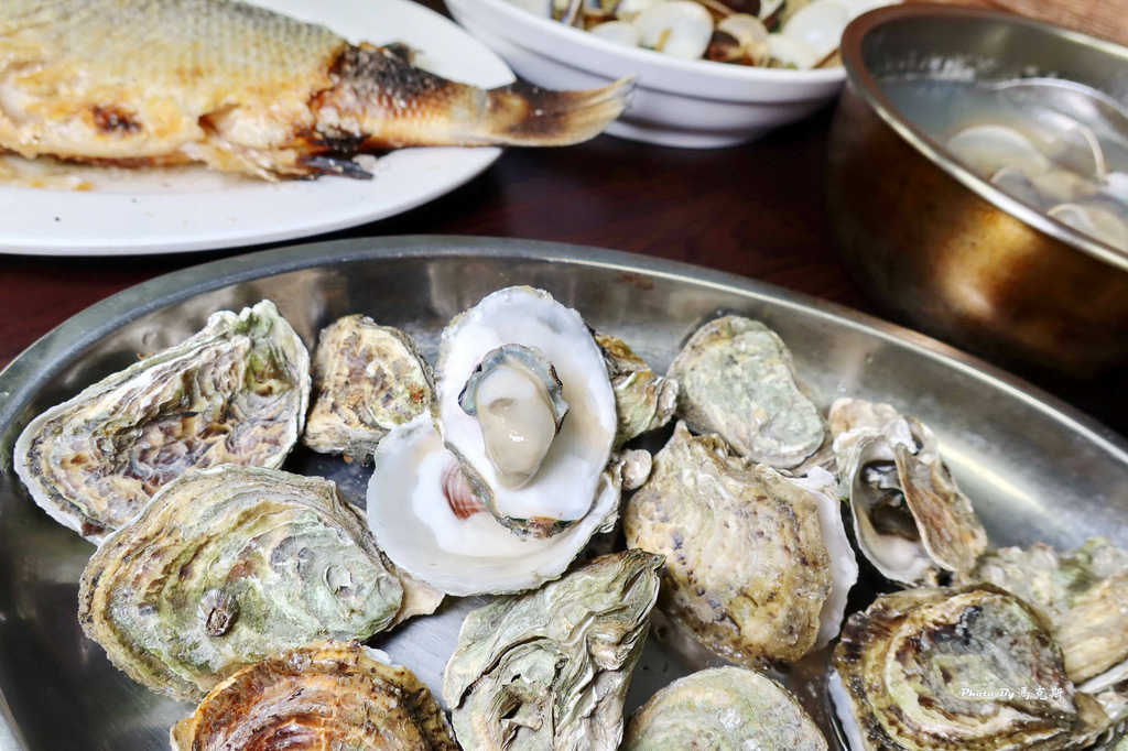 牡蠣是帶殼牡蠣,店家幫忙烤好後上桌就能直接享用。