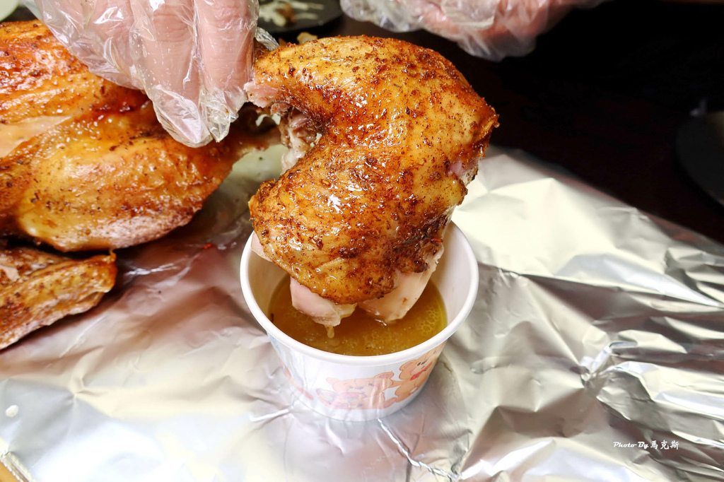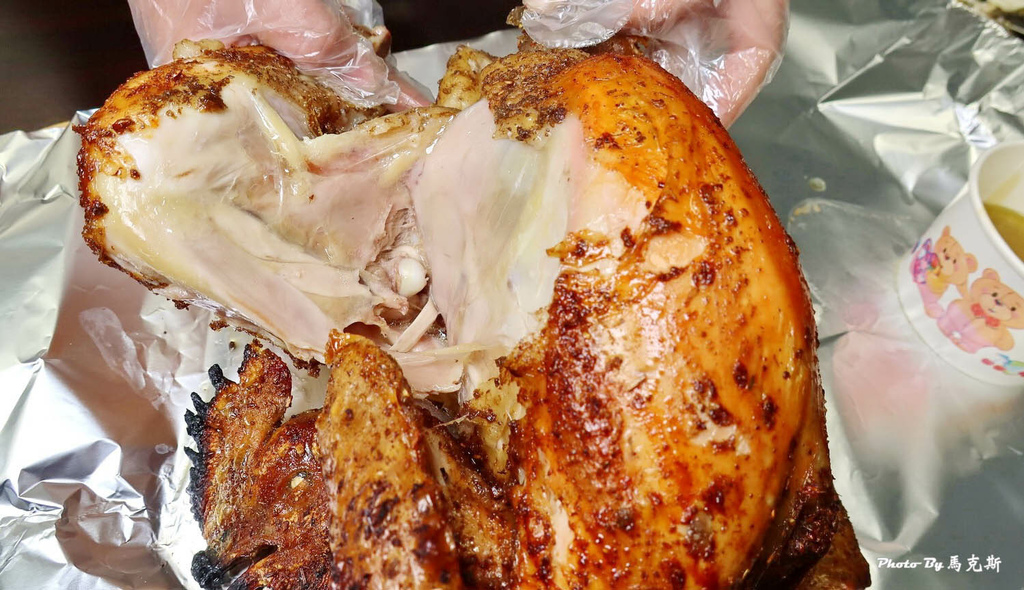 桶仔雞現點現烤,是選用黑羽土雞,有先加入中藥去醃製。