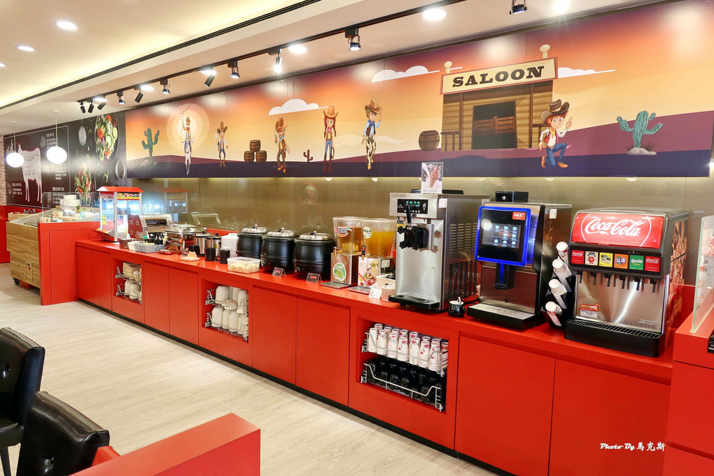 內用享飲料咖啡、玉米濃湯、義大利麵、魯肉飯、爆米花和冰淇淋等吃到飽。