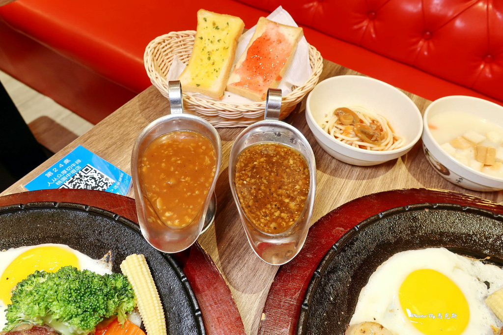 黑胡椒醬黑胡椒味香濃偏辣加分夠味,蘑菇醬以番茄為基底酸中帶甜,綜合醬平衡恰到好處。