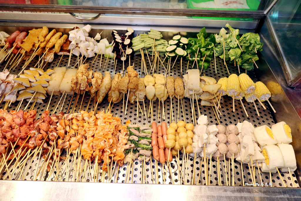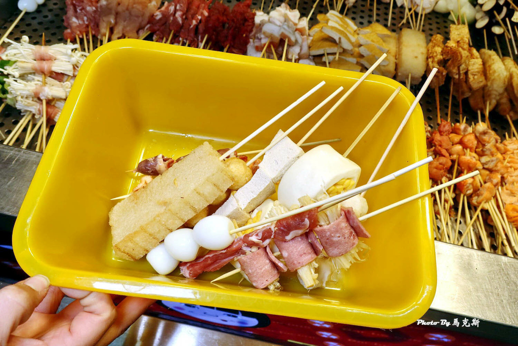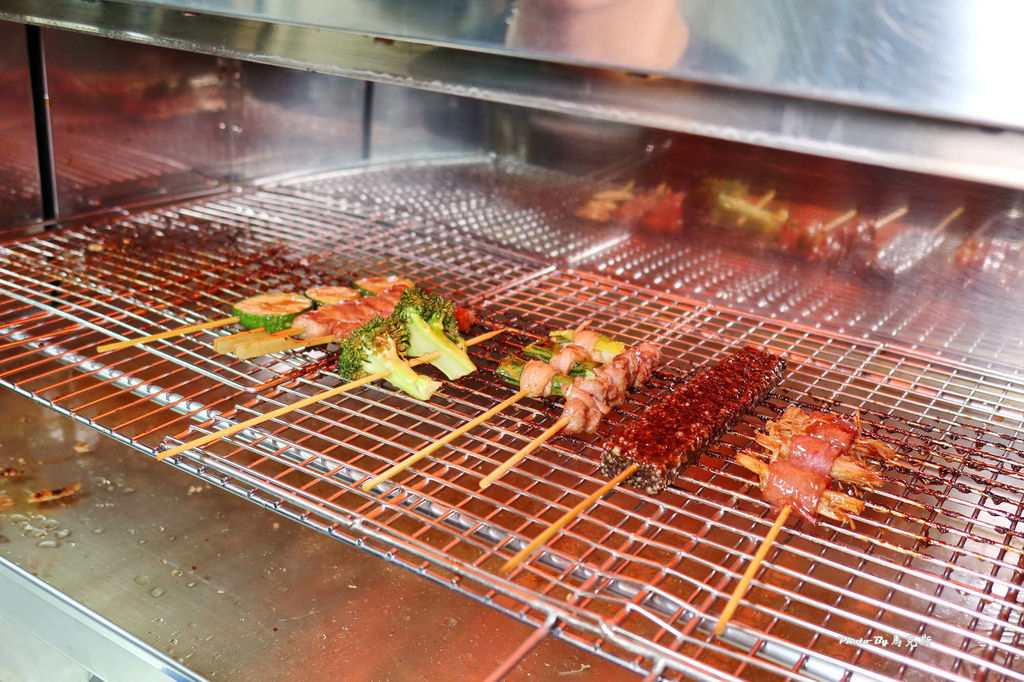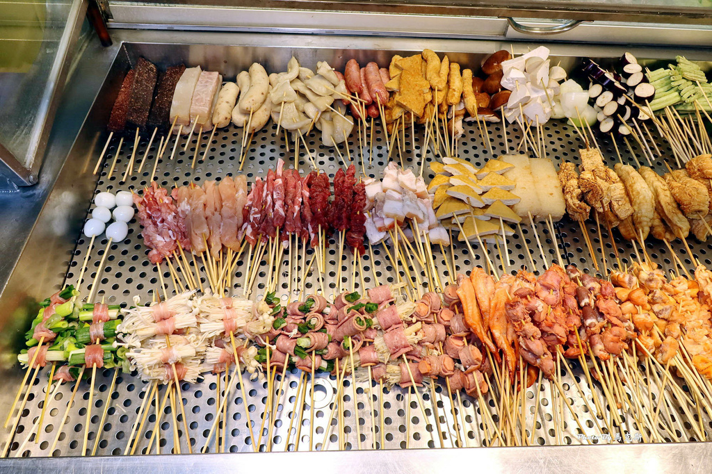 攤子旁有籃子自取,打開透明玻璃後,裡面是擺放整齊的各種串燒可選擇。