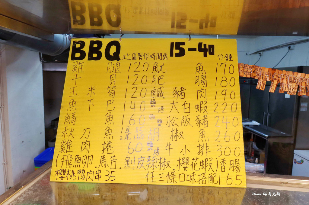 攤子上面有張李林烤肉之家宜昌店手寫立牌的菜單,此區製作時間需15-40分鐘。