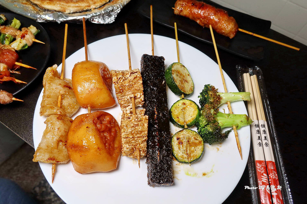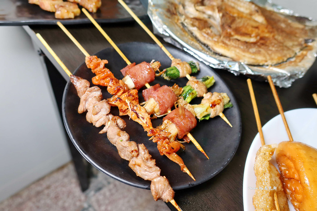 【牛肉串、雞皮、培根金針菇、豬肉青蔥串】