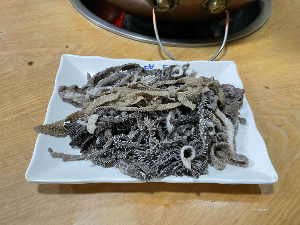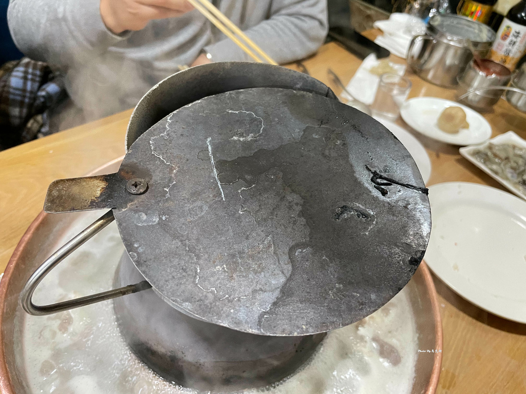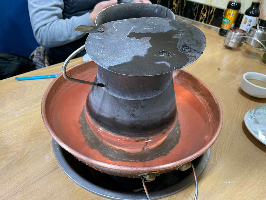 以傳統煙囪銅鍋加入炭火加熱很有特色。