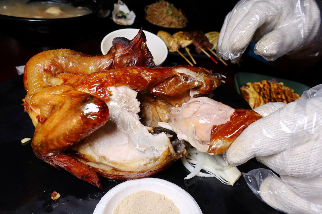 主打整隻雞是以中藥烘烤的桶仔雞,外皮香Q肉鮮嫩多汁好吃。