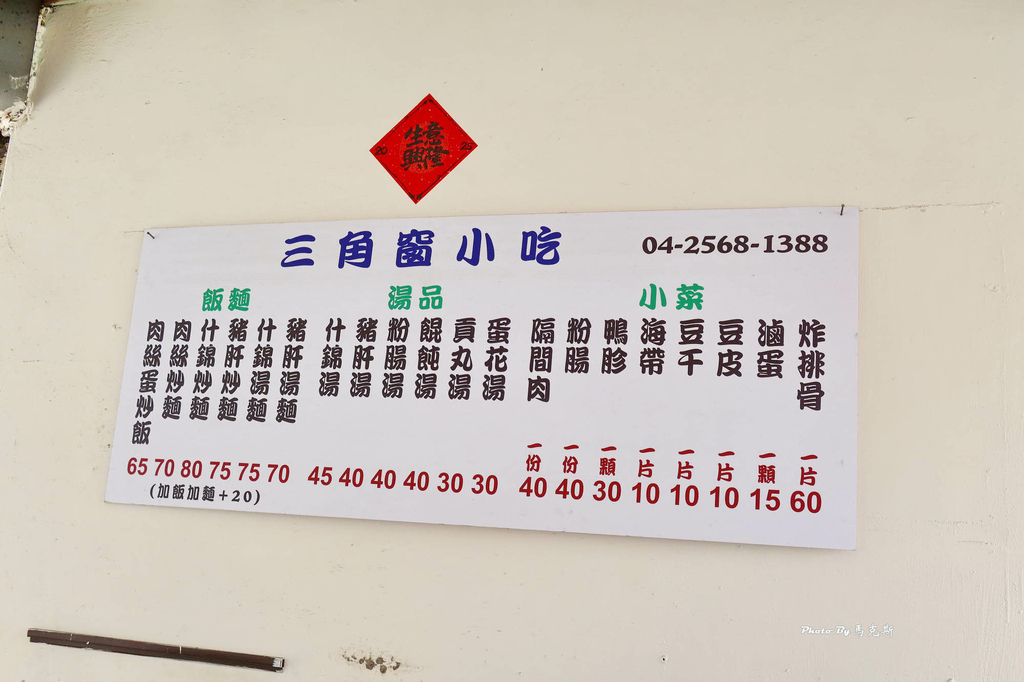 來看看三角窗小吃的菜單價目表。
