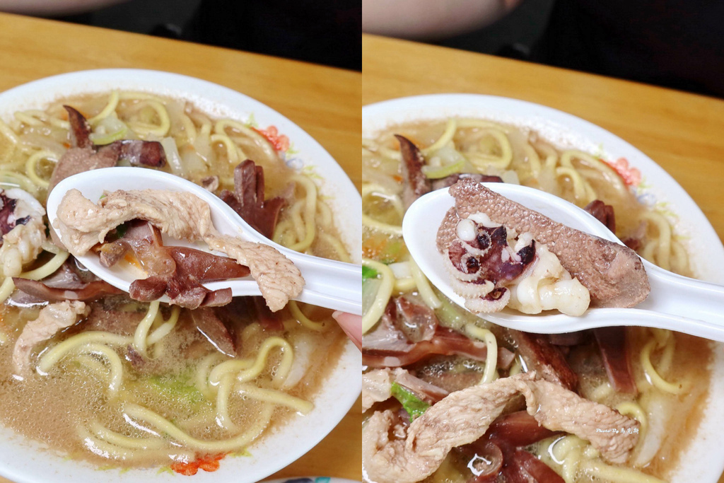 什錦湯麵料多豐富,湯頭濃郁帶甜,麵條Q彈爽口,限量炸排骨不能錯過。