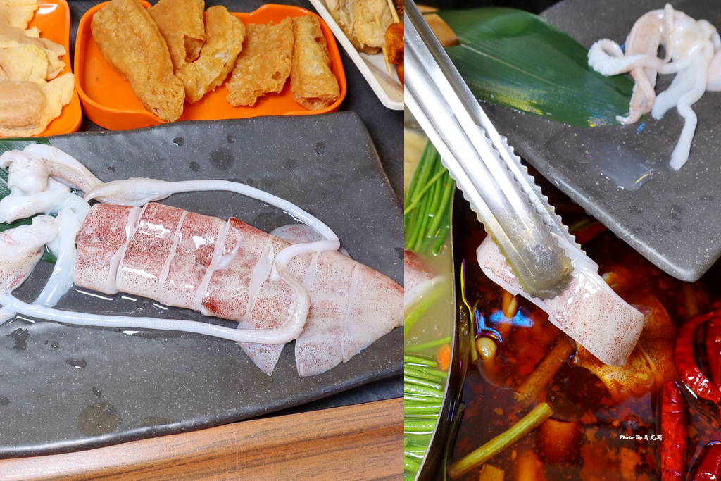 川味牛油麻辣鍋辣度可調整,點了小辣,喝起來香辣會麻帶勁,裡頭有鴨血滑嫩入味,煮任何食材都夠味。