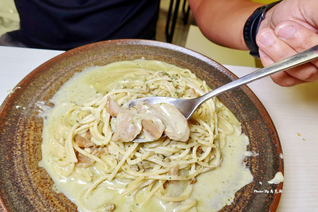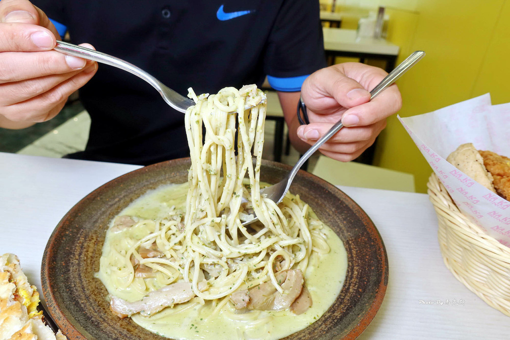 青醬雞肉義大利麵香濃順口,可外帶及搭配平台外送,一早就吃的到,生意不錯,推薦一嚐。
