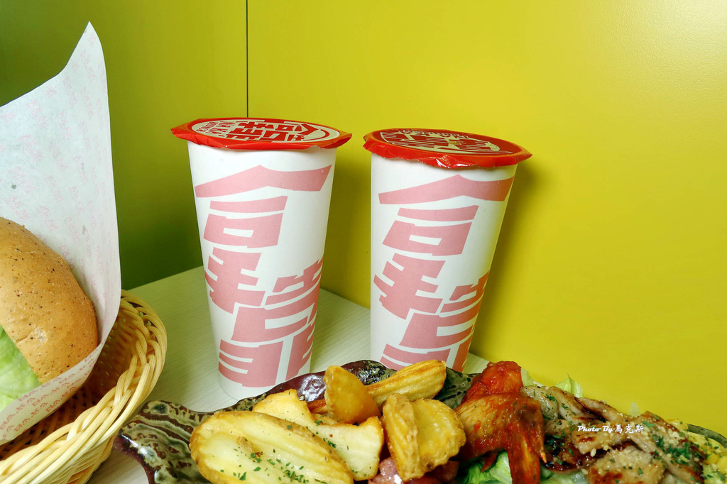 特餐系列附有中杯紅茶或奶茶可擇1,選了奶茶,也可選擇加價換成大杯。