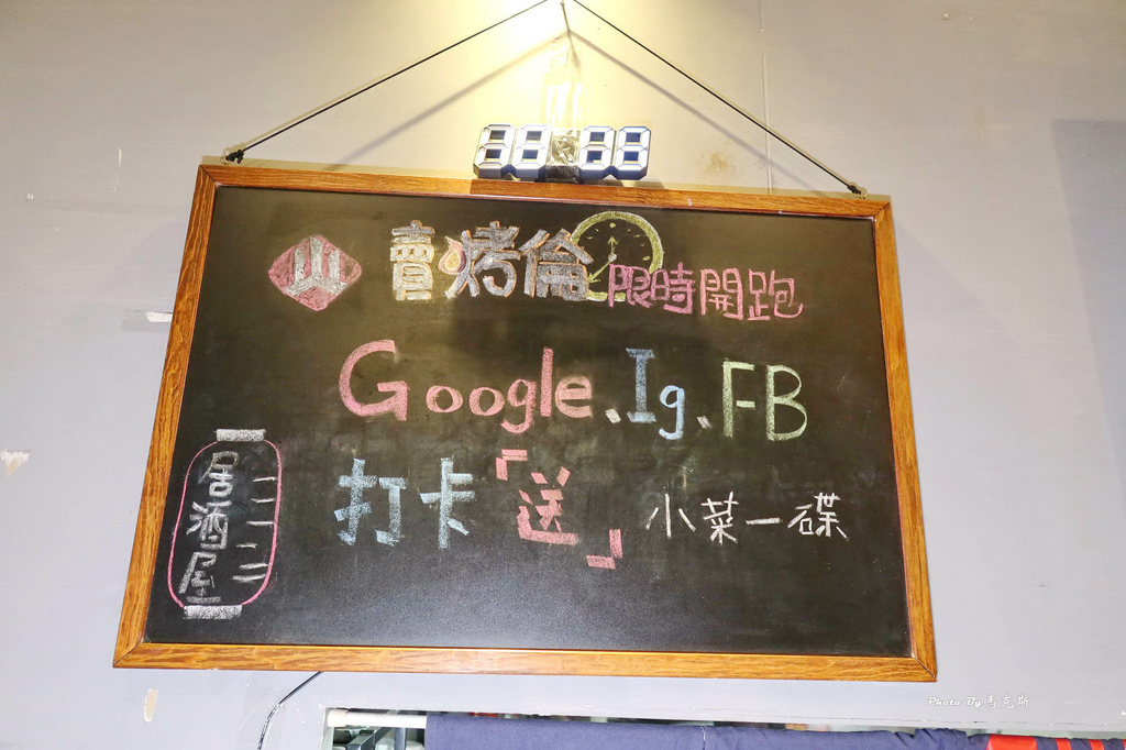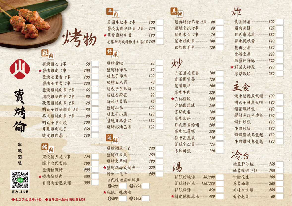 來看看賣烤倫串燒酒場的菜單價目表,內用以掃描QR code點餐方式。