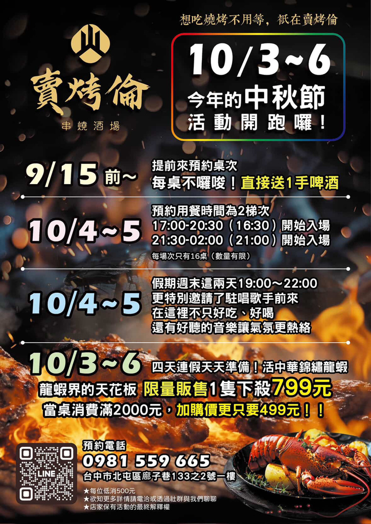 賣烤倫今年中秋節活動開跑,從10/3-10/6。