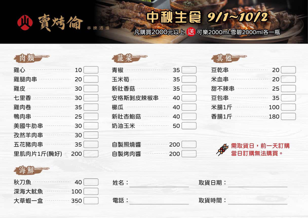 中秋佳節即將來到,賣烤倫也有販售中秋生食,從9/1-10/2止,需前一天訂購。