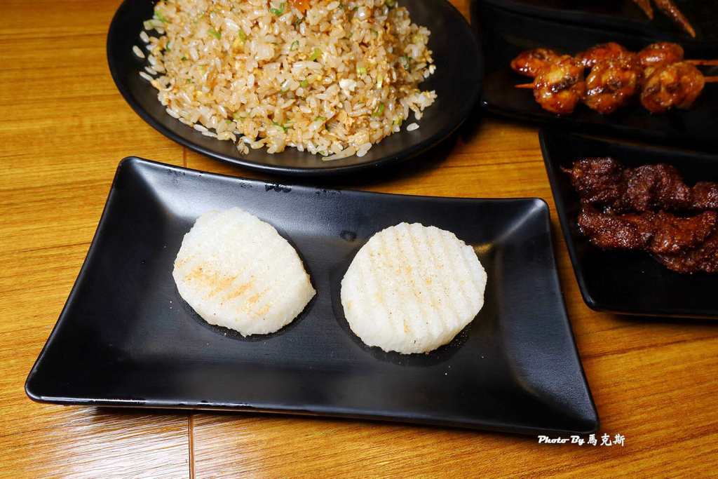 鮭魚飯糰烤到外層酥脆甜香有鍋巴口感,中間Q軟帶著鮭魚香氣。