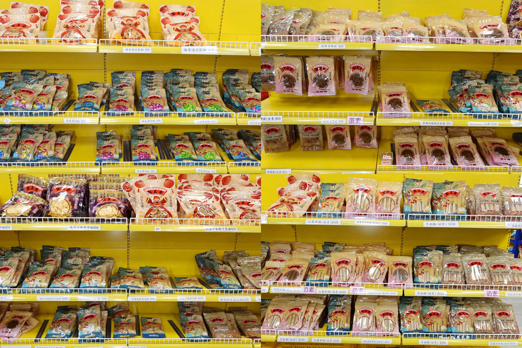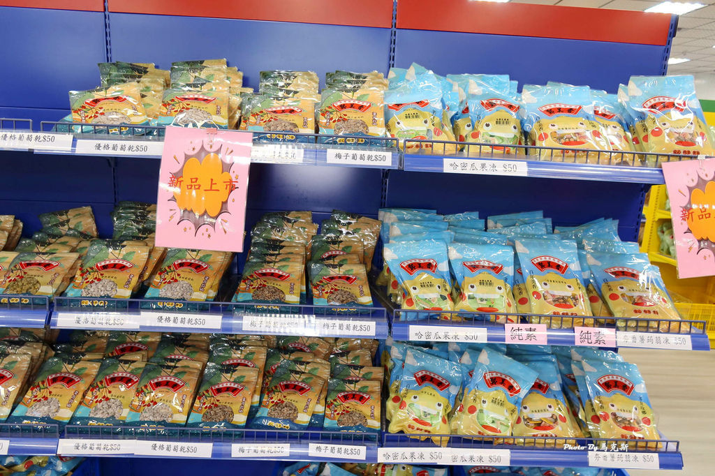 還有新品上市果凍、蒟蒻凍和葡萄乾系列,光餅乾類就超過100種。