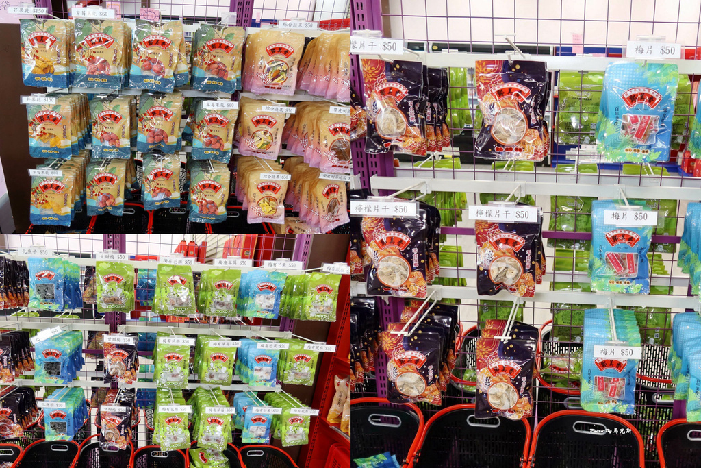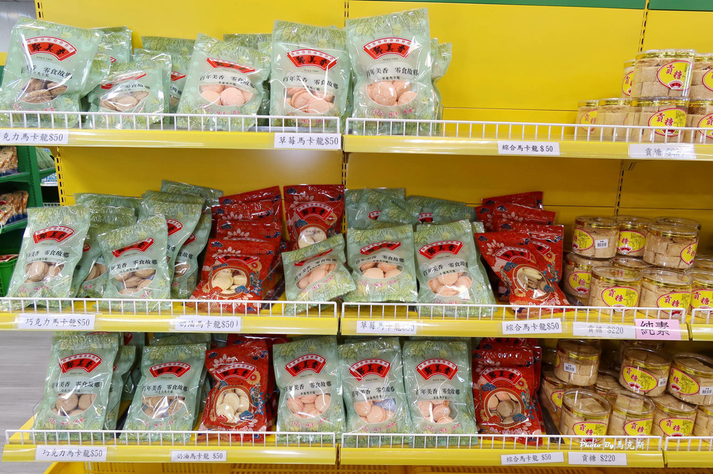 最後買了鹹香9號花生、爆米花、花生粩、葡萄乾、杏仁原味肉紙、杏仁脆片、台式馬卡龍和甜的卡哩卡哩。