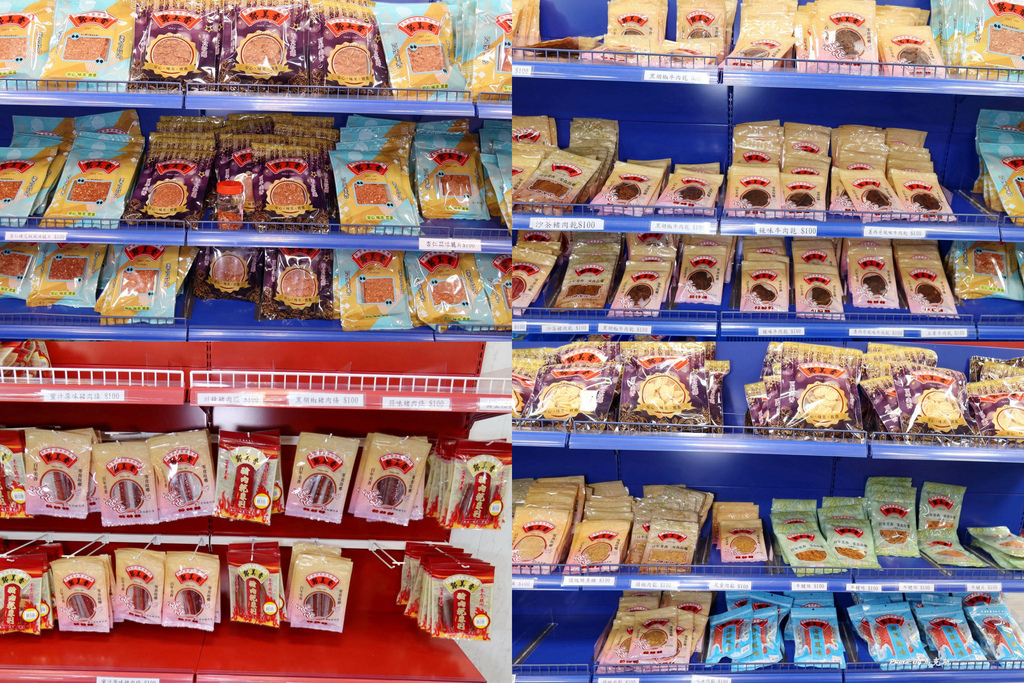 來到豬肉區,有脆片肉紙、豬肉乾、牛肉乾、豬肉條、牛腱絲到肉鬆系列。