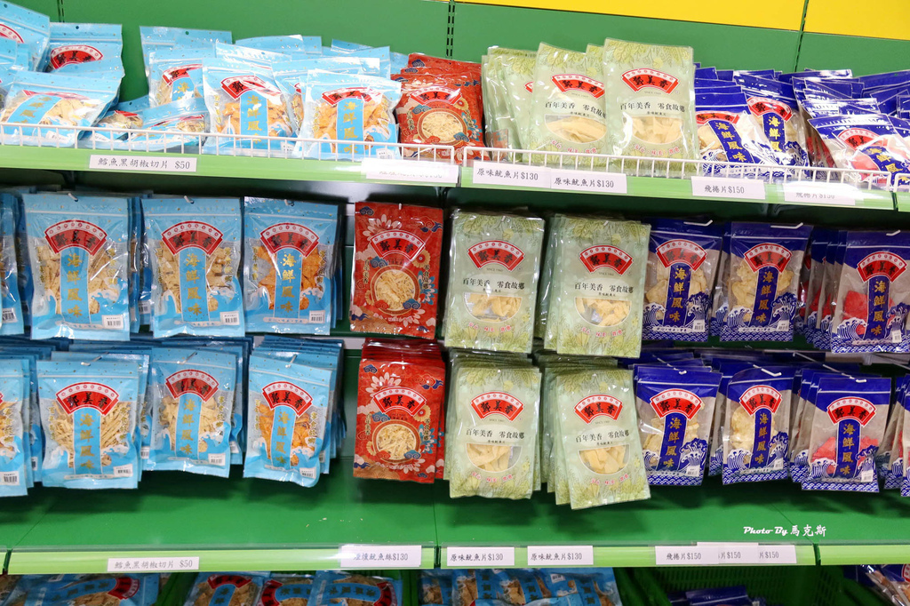 海味區有鱈魚黑胡椒切片、魷魚絲、魷魚片、飛捲片和魷魚大豬公等。