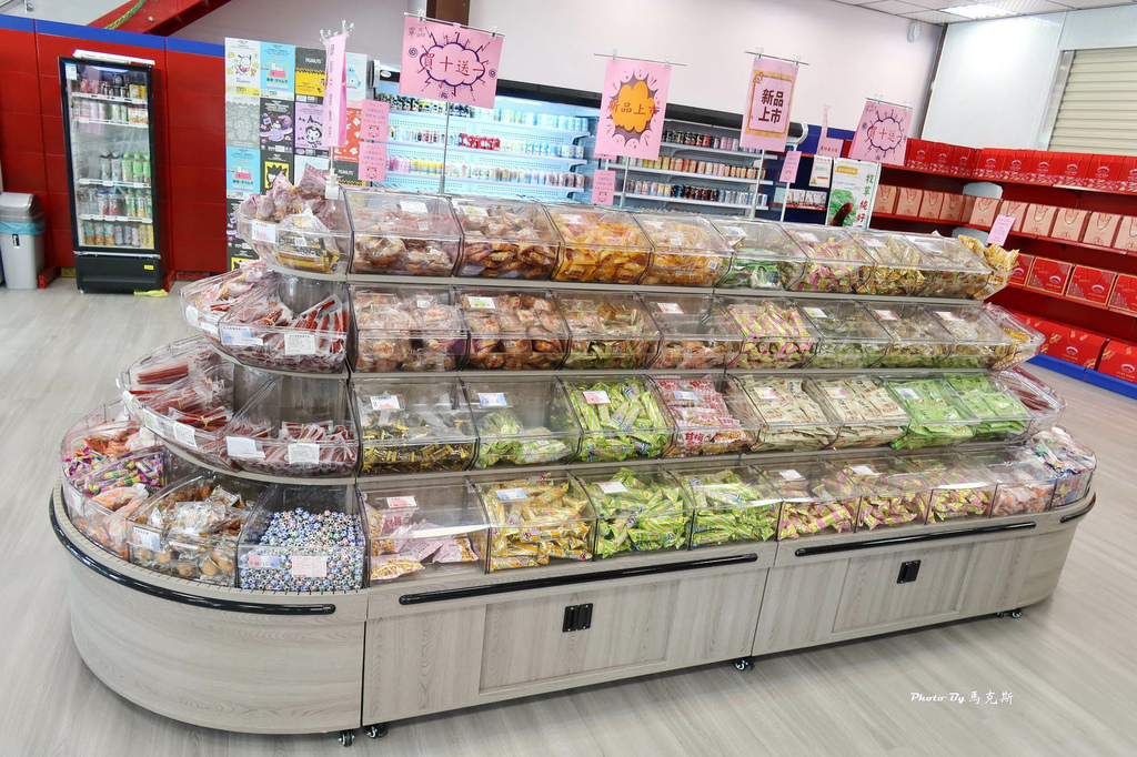 商品種類很多,有花生、堅果、瓜子、肉乾、豆干、餅乾、糖果到IP風味氣泡飲等。
