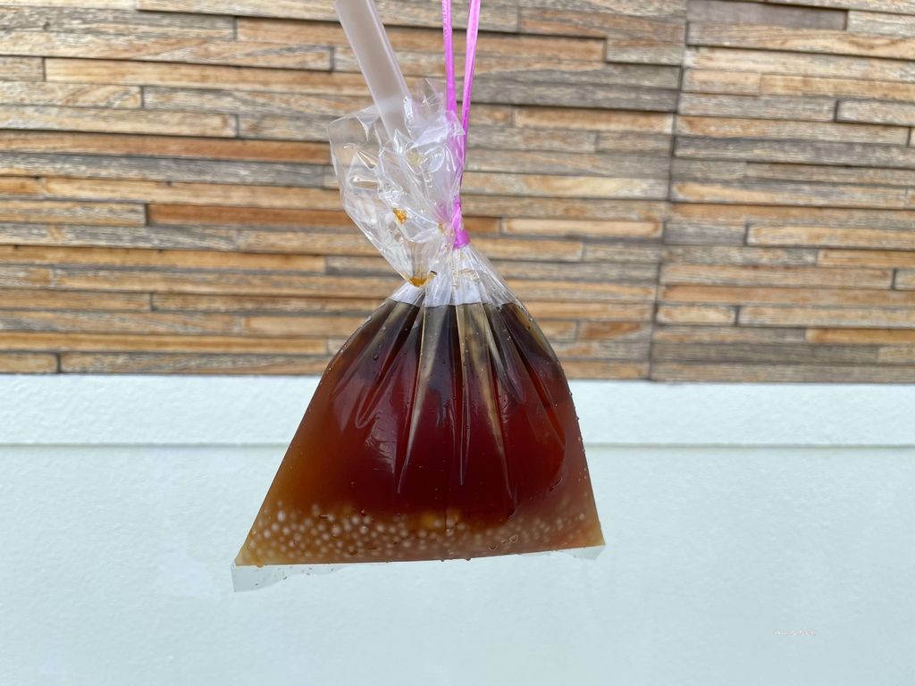 並將吸管插在塑膠袋裡,讓人想起兒時品嚐到的滋味,很有古早味。