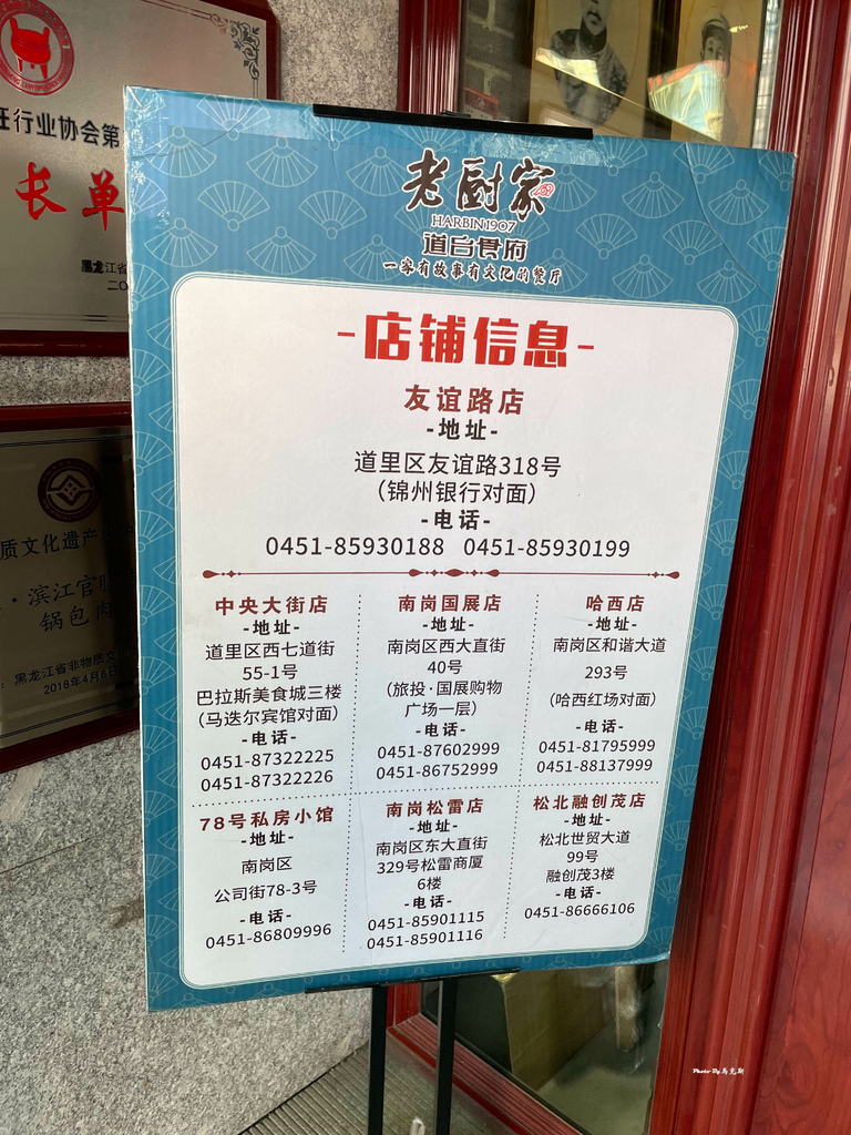 入口進來看到的這立牌是老廚家在哈爾濱的其他分店資訊。