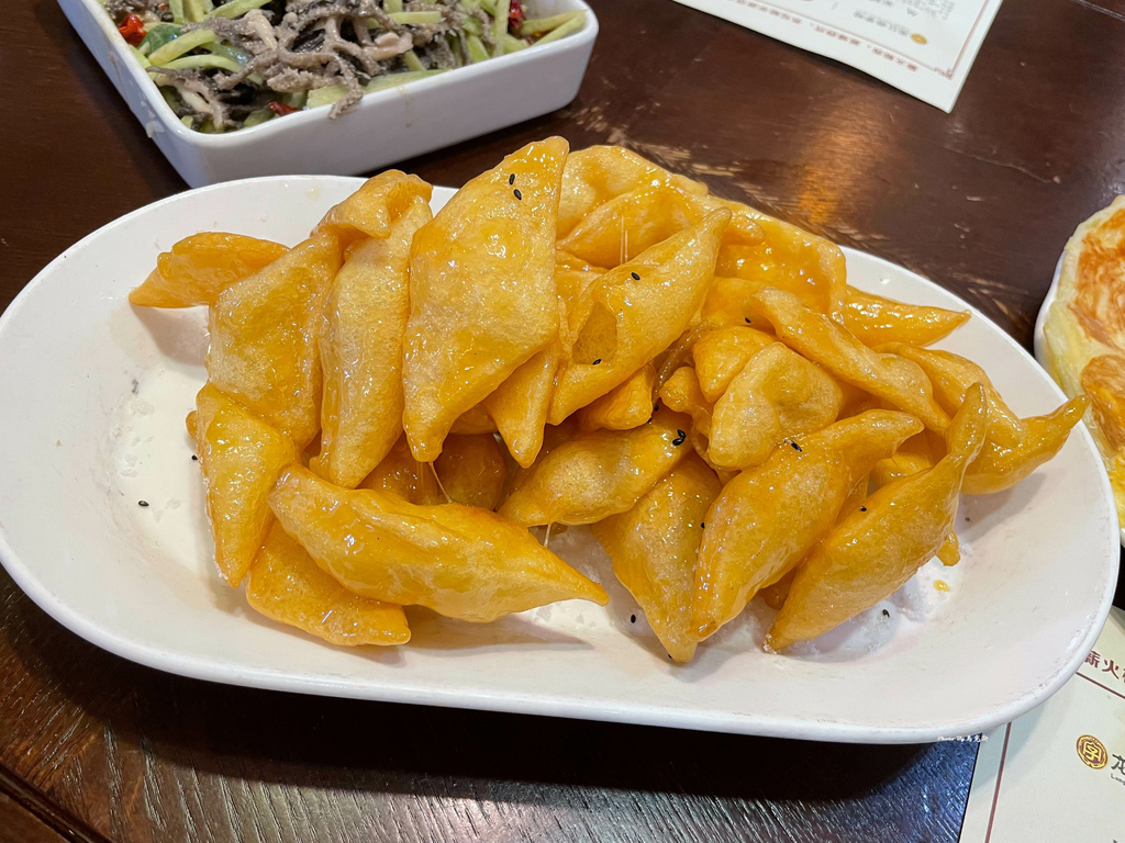 外香甜酥脆裡面是空心的,有著拔絲效果,簡單好吃。