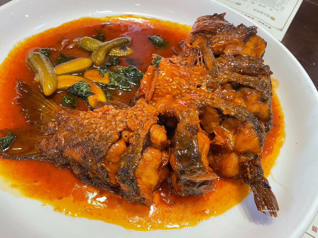 啤酒魚是選用活草魚,類似紅燒做法,草魚處理過有先油炸,再加入祕製醬汁、番茄和酸黃瓜。