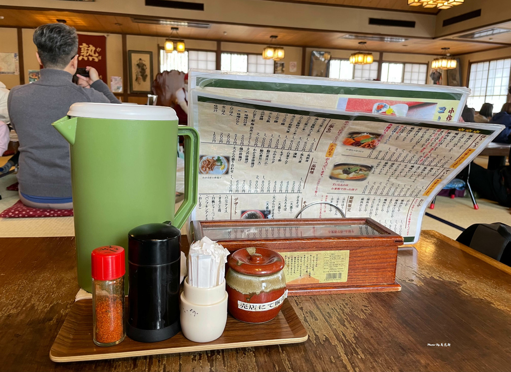 來看看甲州ほうとう小作河口湖店的菜單價目表。