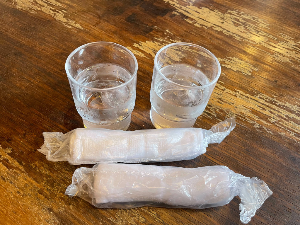 服務人員會遞上一人一條濕毛巾可供擦拭雙手用。