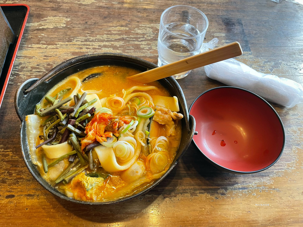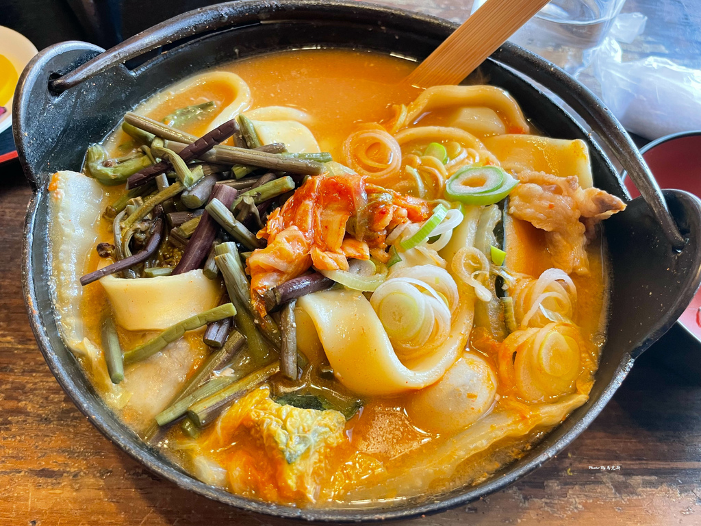每一鍋份量多,蔬菜類不少,味噌湯頭香濃鮮甜,寬扁麵Q彈有口感。