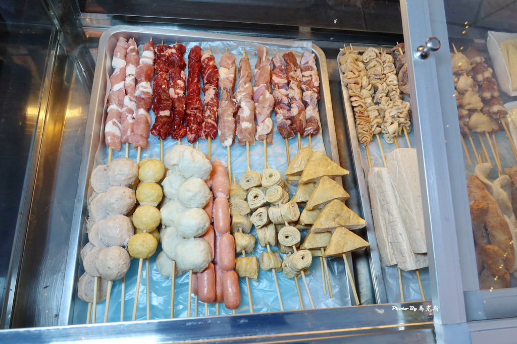 在餐車前面是店家所販售的各種串燒新鮮食材,在裡面擺放整齊。