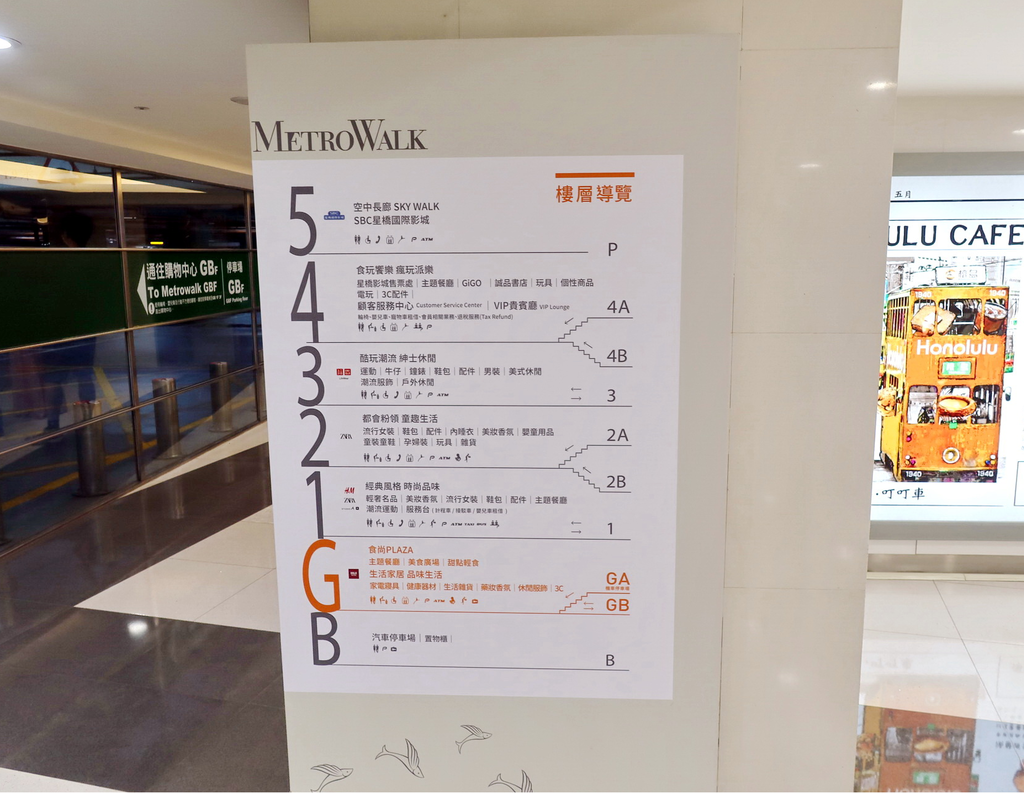 大江國際購物中心的樓層導覽,能讓第一次來的人有基本概念找到要的資訊。