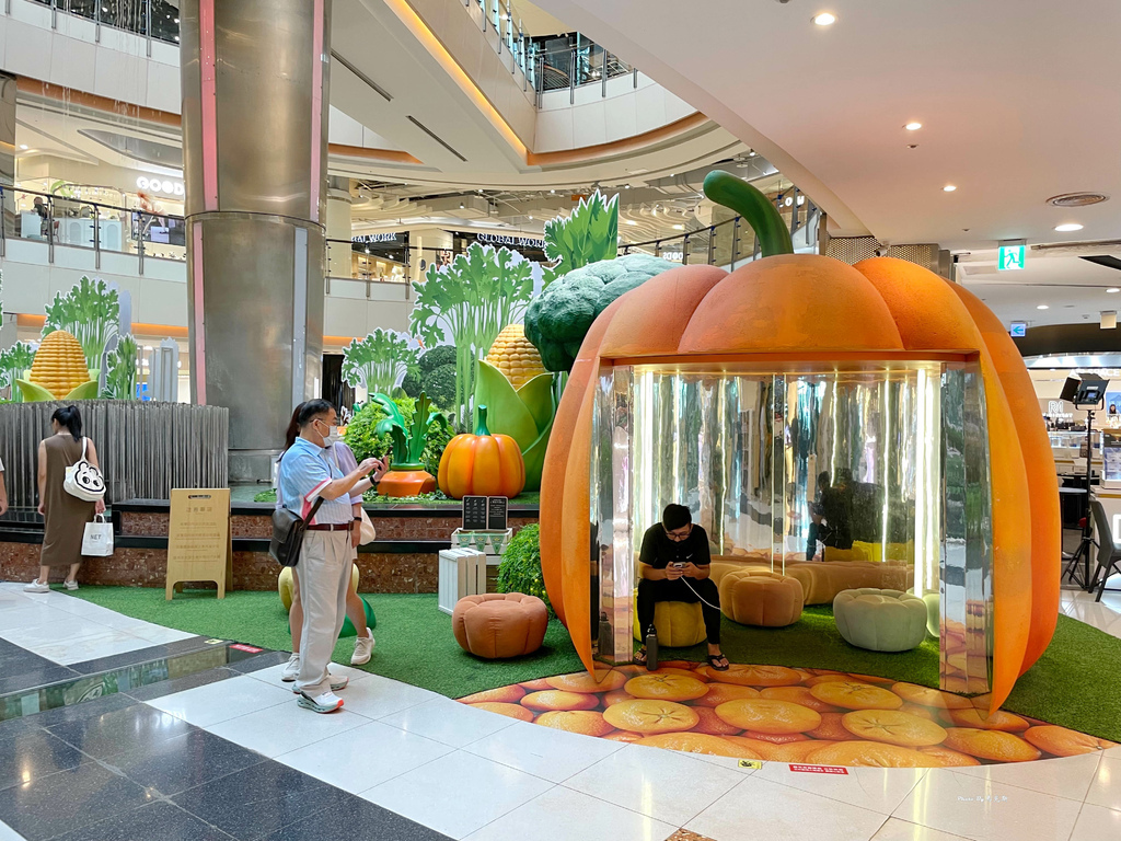 眼前這巨大南瓜,裡頭都是鏡子,進去後會有各種自己反射畫面很有趣。