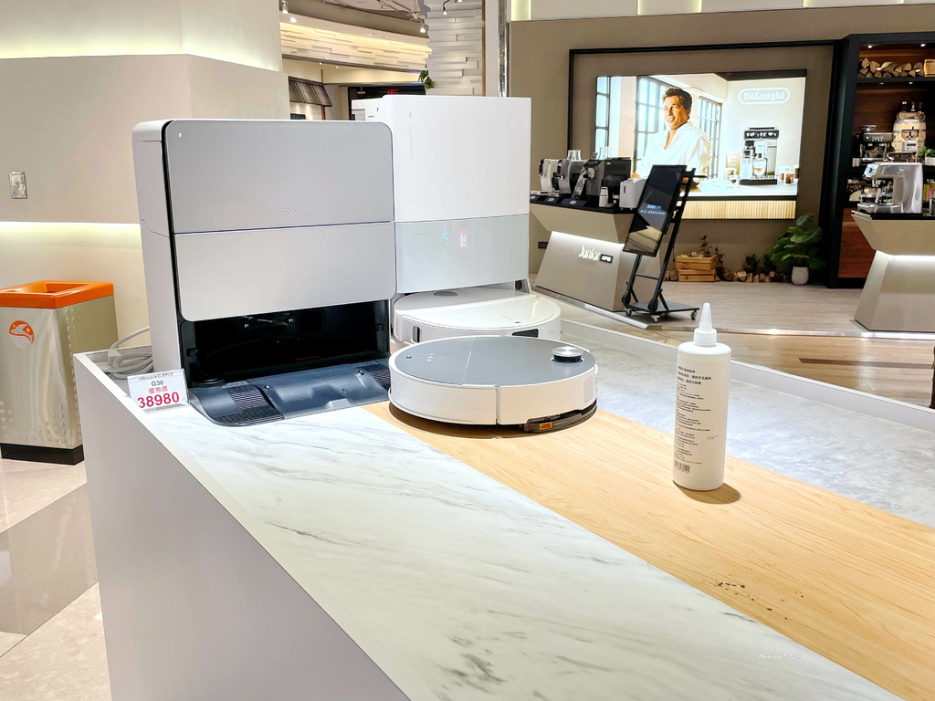 最左邊黑色這台吸力強,有可伸縮拖把臂,能更深入清潔邊緣,並有高溫自動清洗拖布+烘乾功能。